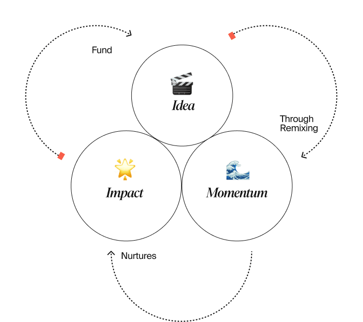 Ideas gain momentum through remixing — value is allocated by impact.